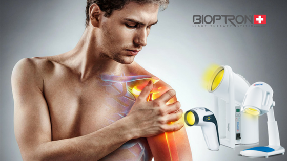 Treatment: The first part of the therapy is usually with NSAIDs (anti-inflammatory medicine which are used against pain and inflammation), and sometimes it is with local infiltration of glucocorticoid in the shoulder. One important aspect of therapy is kinesiotherapy (the application of which should improve the range of motion) as well as physiotherapy (which accomplishes an analgetic effect as well as improvement of the local and systematical circulation). In this case, Bioptron was used for 15 days for 10 min daily applied at the projection of the deltoid muscle, and in conjunction with assisted exercise. During these 15 days of additional Bioptron treatment considerable pain relief was observed and further pain relief was not required after this treatment (reducing the overall consumption of pain and anti-inflammatory medication).