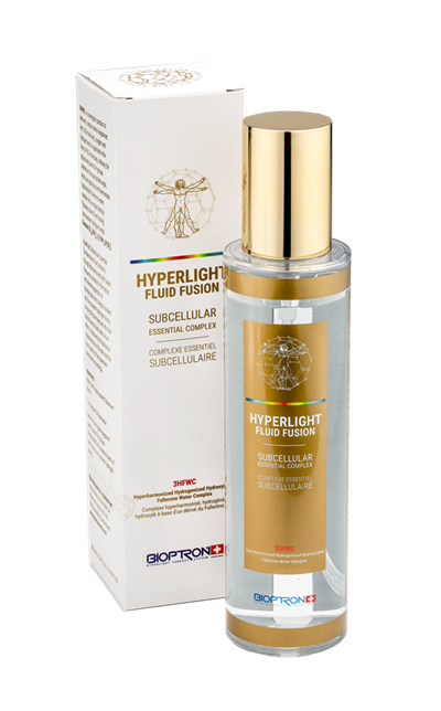 A highly functional fullerene C60 derivative interacts with light, restoring cellular harmony through resonance and light fusion with biomolecules' electromagnetism. This process aligns both covalent and non-covalent hydrogen bonds, returning biomolecules to their natural, harmonized state, and slowing down the aging process.Hyperlight Fluid Fusion exhibits significantly higher thermostability, photostability, and antioxidant activity than other antioxidants. With fullerene providing up to 250 times more antioxidant effect than vitamin C, its powerful antioxidative properties help reduce oxidative stress, promoting healthy skin.