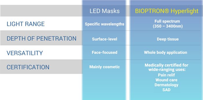 LED Masks vs. BIOPTRON: A Clear Difference