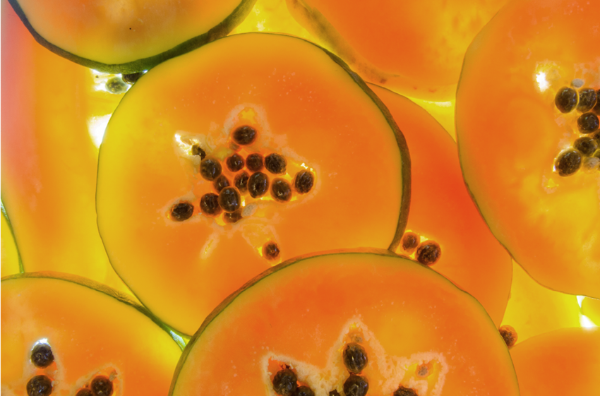 Papaya - Papaya acts as a natural exfoliating tonic. It leaves your skin spotless and even-toned as a result of its high vitamin A content. Studies show that the enzymes found in papaya also have positive effects on reversing the aging process.