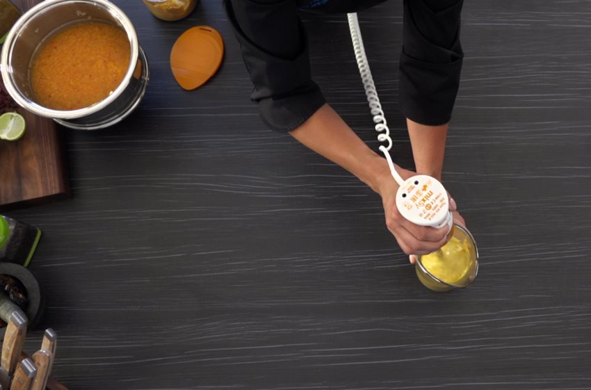 - Start to mix using the MixSy and gradually add the olive oil, continuously mixing the entire time