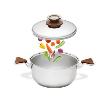 The Zepter Lid fits seamlessly onto the pot’s edge, creating a hermetic seal that drives the Zepter Closed Circle process.