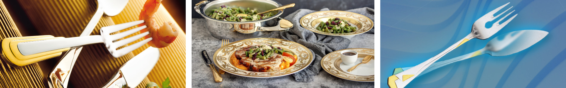 Kimono, Caprice, Senator and Venus are the names of the Zepter Cutlery sets: a unique choice of everlasting materials, and silver-plated, gold-plated, and mirror-polished finishes for luxurious style.