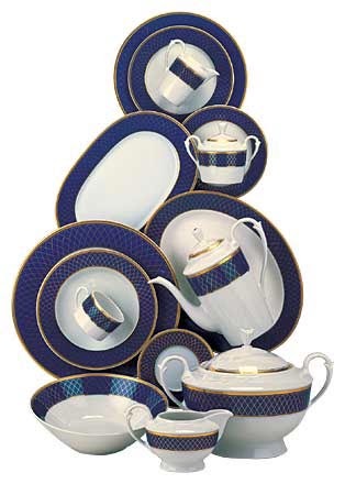 Cobalt Royal - Complete Porcelain Dinner and Coffee Set for 12 Persons, 68 pieces