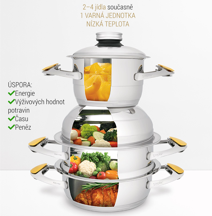 - Multifunkční, se současnou přípravou více jídel na jednom zdroji tepla
