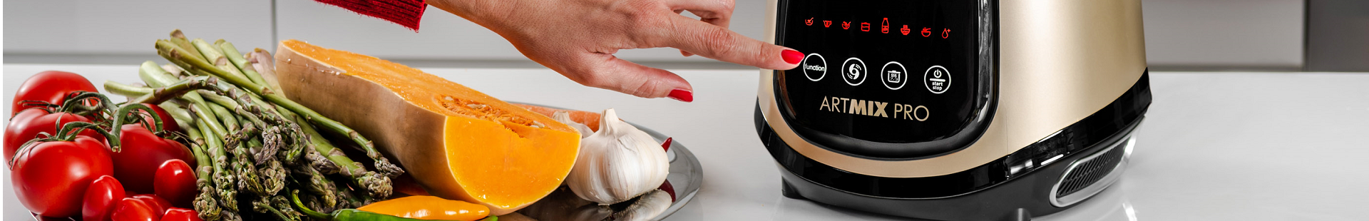 ArtMix Pro dokonale zapadá do moderního a rušného životního stylu dnešní doby. Rychlý, snadný a všestranný mixér pro přípravu zdravých a chutných jídel a méně chaosu v kuchyni. Objevte proměňující sílu mixéru ArtMix Pro, který vám pomůže ušetřit čas a dodá jídlu profesionální povrchovou úpravu. Jeho výhody ocení jak hobby kuchaři, tak kulinářští mistři.