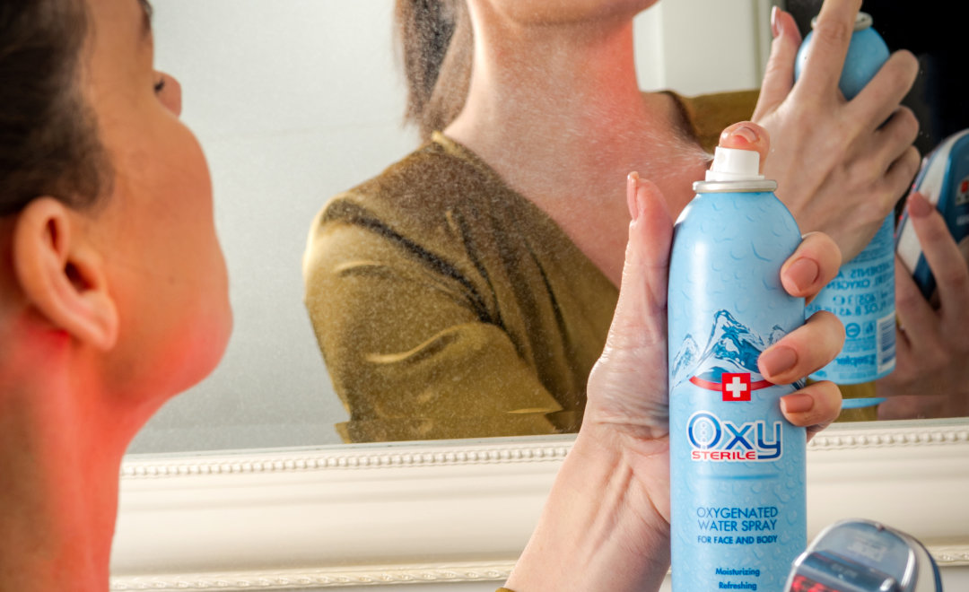 Sterilní sprej Oxy je přírodní a jedinečný přípravek pro péči o pleť, jehož složení poskytuje pokožce hydrataci a vitalitu.